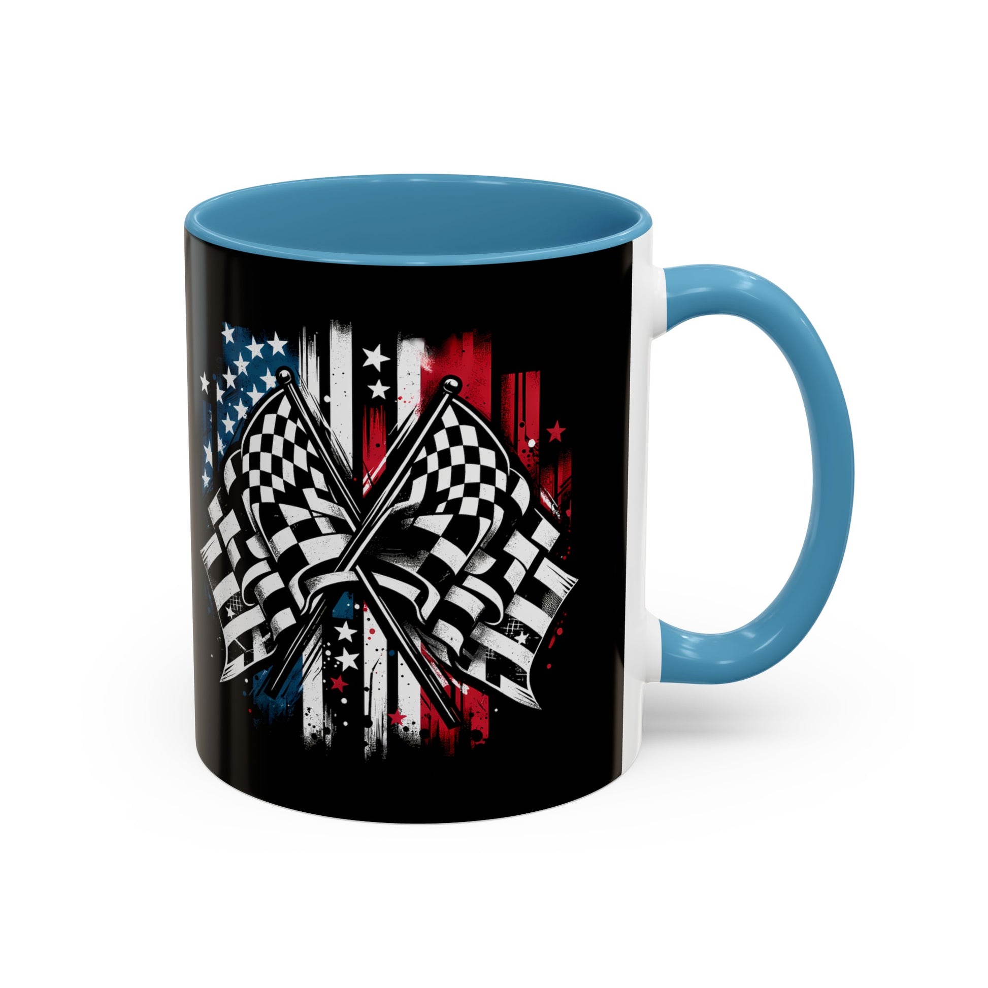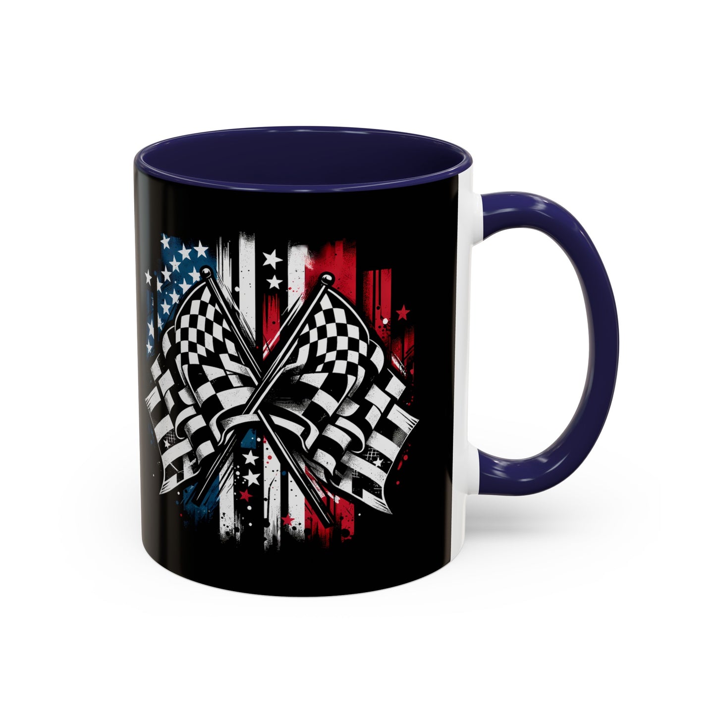 Racing American Flag Accent Coffee Mug (11, 15oz)